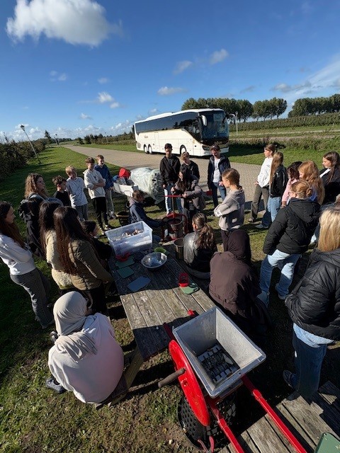 Samen met de docenten mevrouw Panhorst, meneer Blom, meneer Kienhuis en mevrouw Swagerman vertrokken de leerlingen al vroeg met de bus naar Herwijnen. Het was prachtig weer waardoor iedereen binnen en buiten met de opdrachten en activiteiten aan de slag waarin thema’s als klimaat, duurzame energie, water en biodiversiteit centraal stonden.